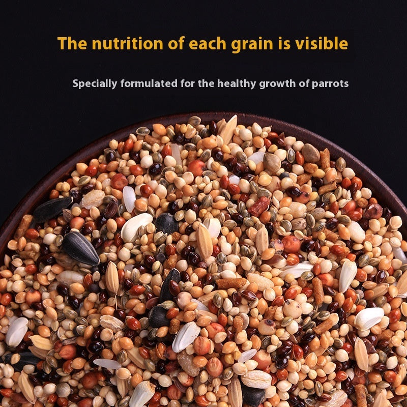 Raw material composition: White sunflower, rice, sorghum, rice, red raccoon, yellow raccoon, white raccoon,Black raccoon, green raccoon, Yellow Valley with Shell, small black watermelon seed, bird feed, wheat kernels, flaxseed,Rapeseed, multivitamin, mineral trace elements, methionine, lysine, high calcium